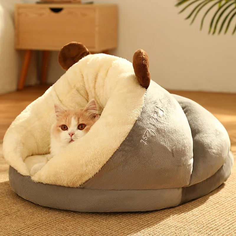 Give your furry friend the ultimate cozy experience with our Warm Small Dog Kennel Bed. Made from 100% cotton, it's not only washable but also breathable for a comfortable sleep. Its cute slippers shape and foldable design make it perfect for any room. Treat your pet to the best!